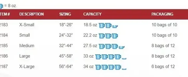 X-Small 18-26" – Pack of 10 ,X-Small 18-26" – Case of 100 ,Small 24-32" – Pack of 10 ,Small 24-32" – Case of 100 ,Medium 32-44" – Pack of 12 ,Medium 32-44" – Case of 96 ,Large 45-58" – Pack of 12 ,Large 45-58" – Case of 96 ,X-Large 56-64" – Pack of 12 ,X-Large 56-64" – Case of 72 |