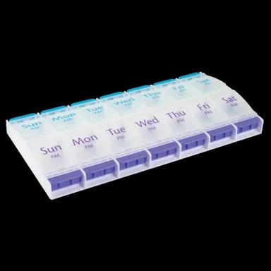 Features two spacious compartments per day – one for morning and one for evening doses.