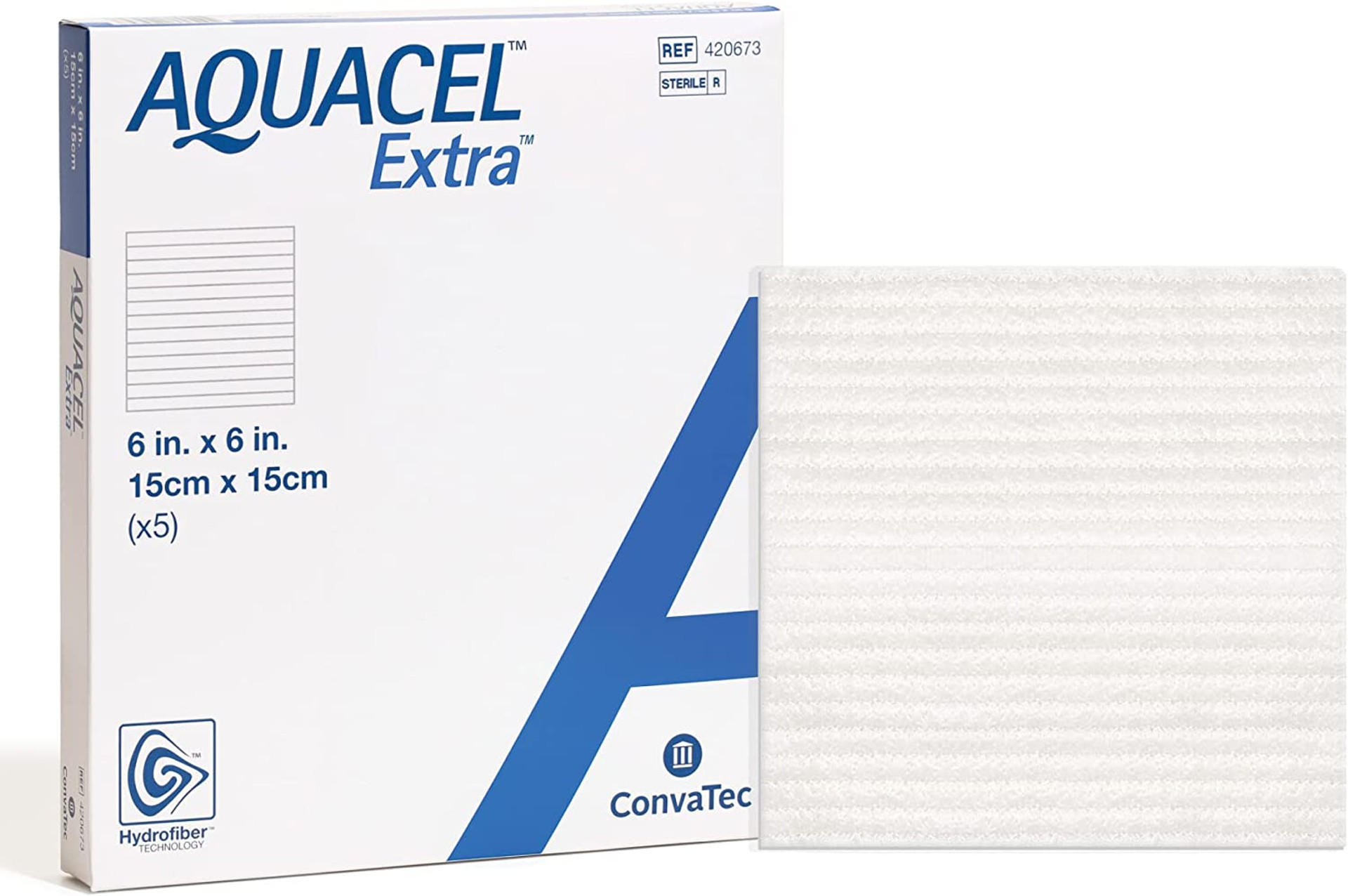 - Aquacel 6 × 6-inch wound dressing is made with two-dimensional strengthening fibers for high strength and durability