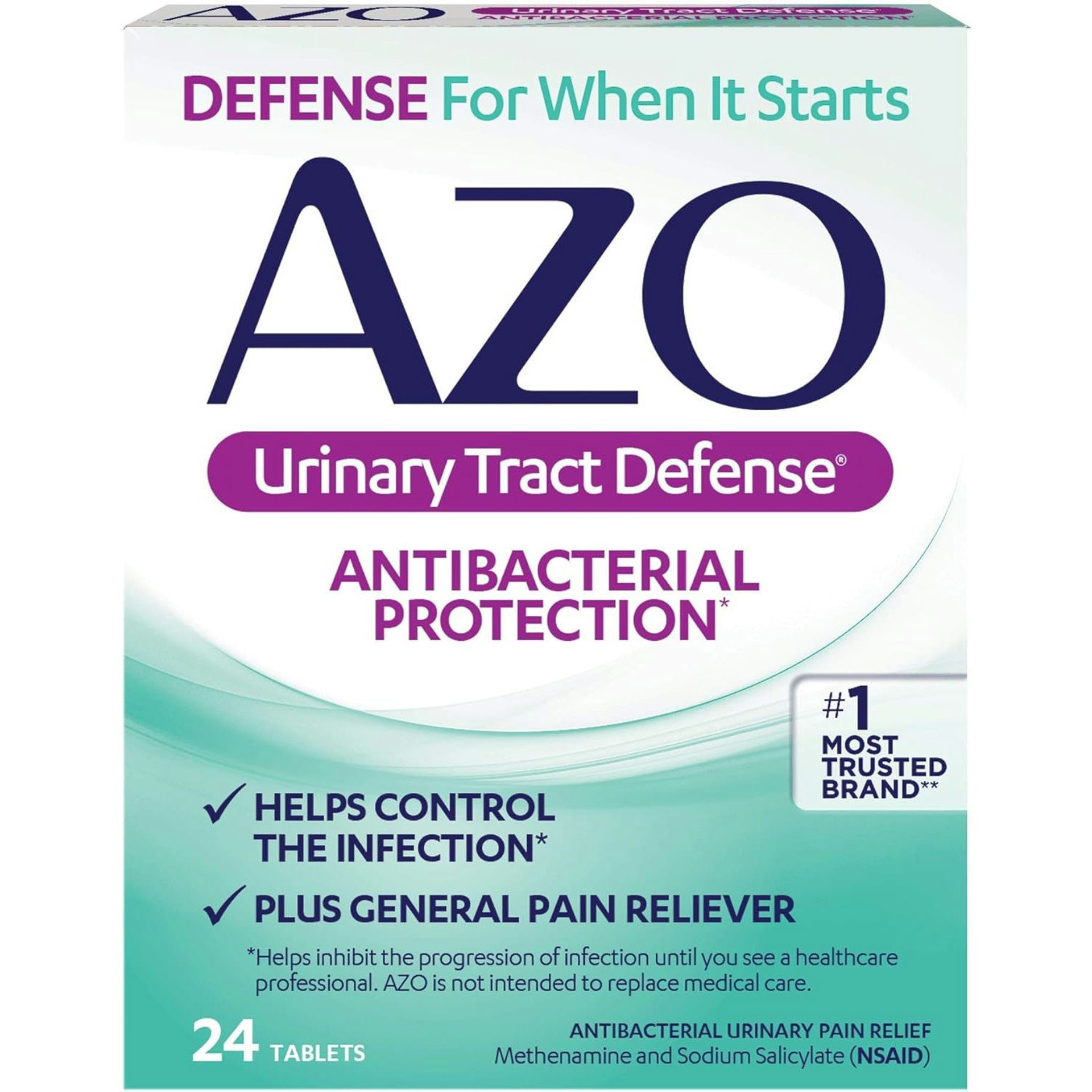 AZO Urinary Tract Defense helps control your urinary tract infection and relieve pain until you see a doctor. It includes Methenamine, the #1 OTC drug ingredient for UTI bacteria control.