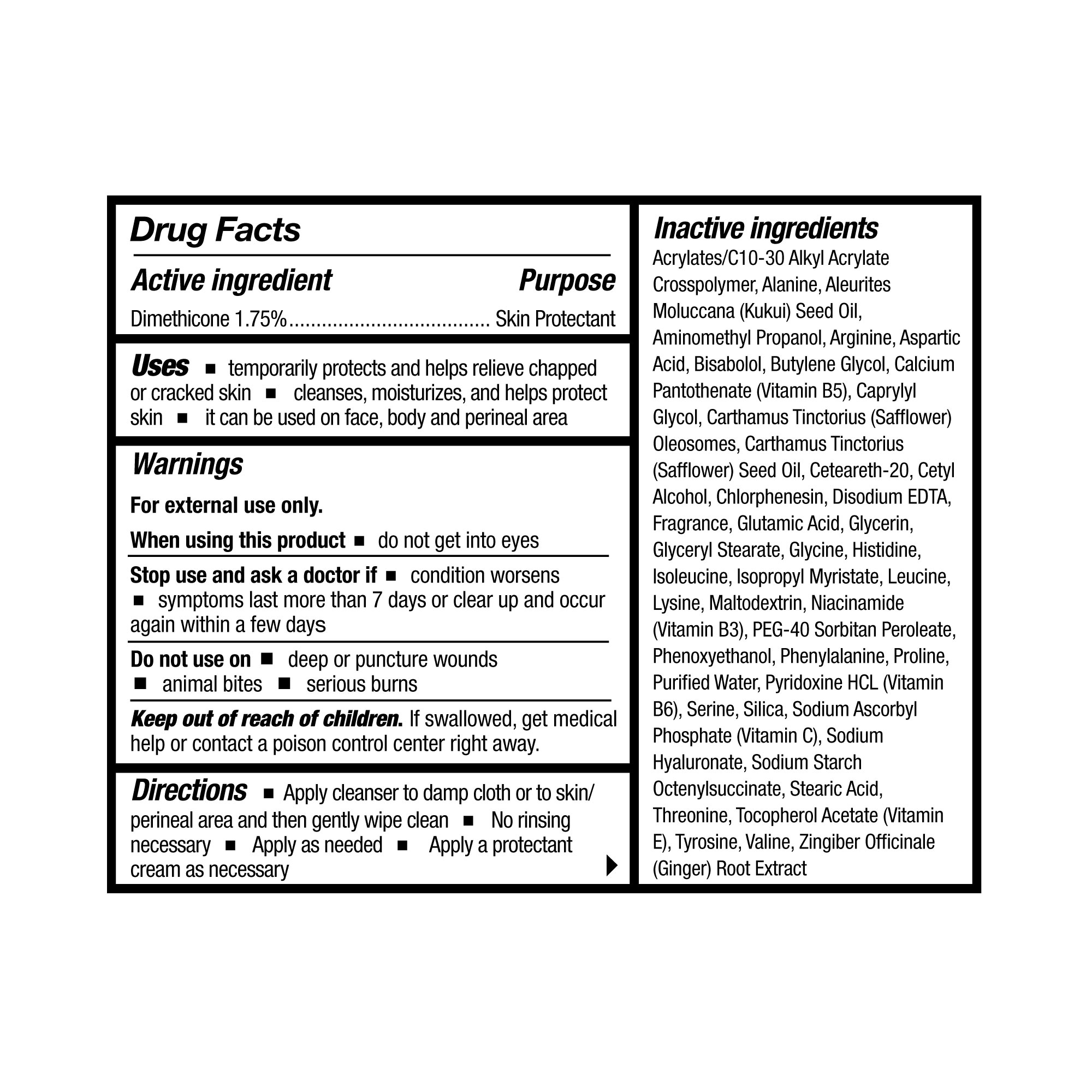 - Formulated with Dimethicone (1.75%) as a protectant that soothes and smooths skin