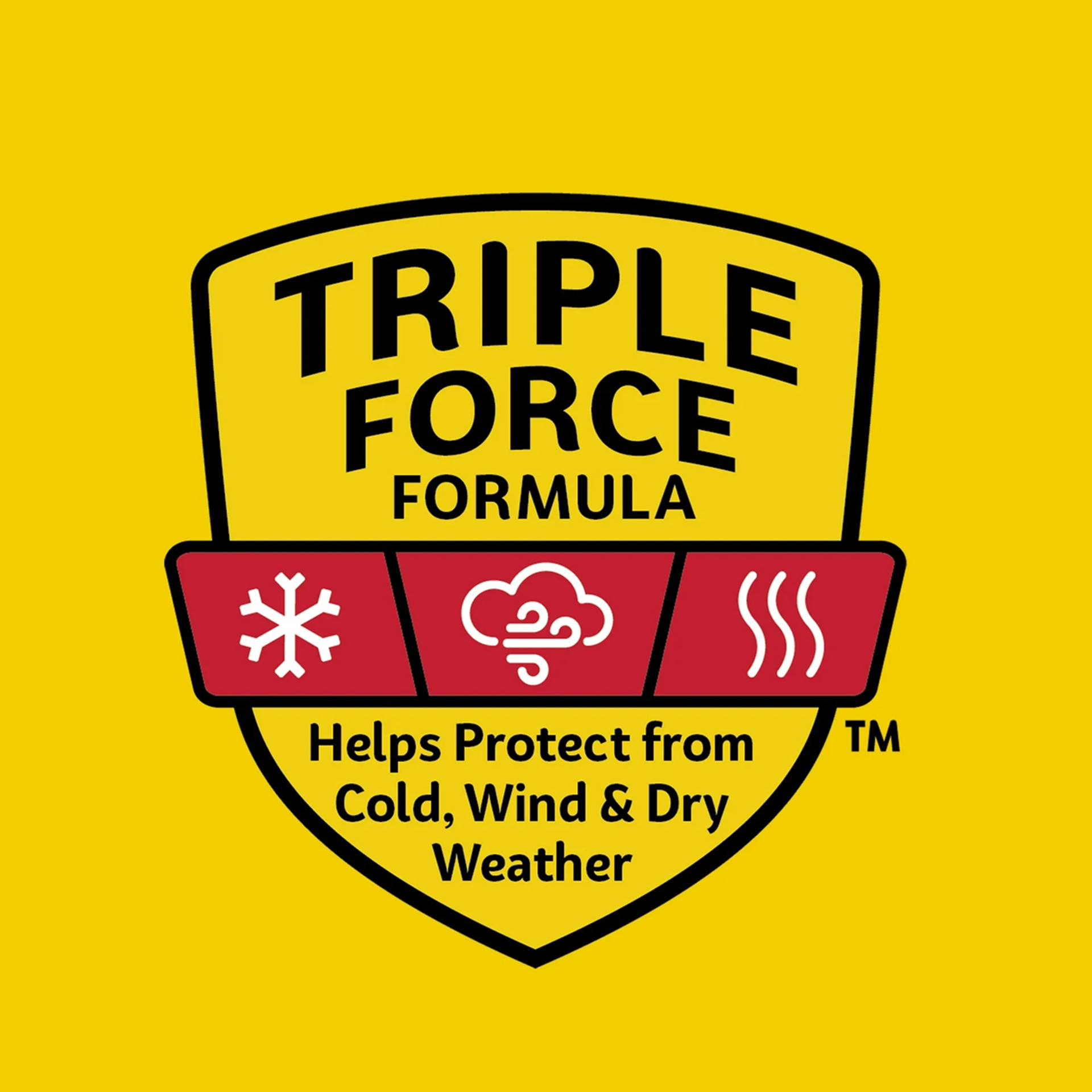 - Triple Force Formula helps protect from cold, wind and dry weather