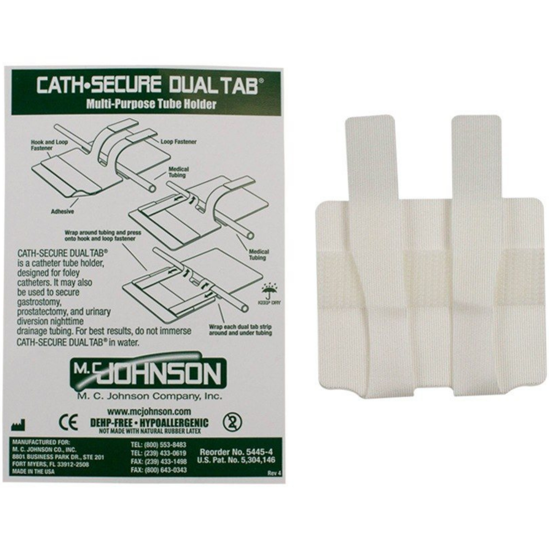 - The Cath-Secure Dual Tab is designed extend from the center, wrap around the tubing, and anchor it tightly to the tape using a press-on hook-and-loop fastening system