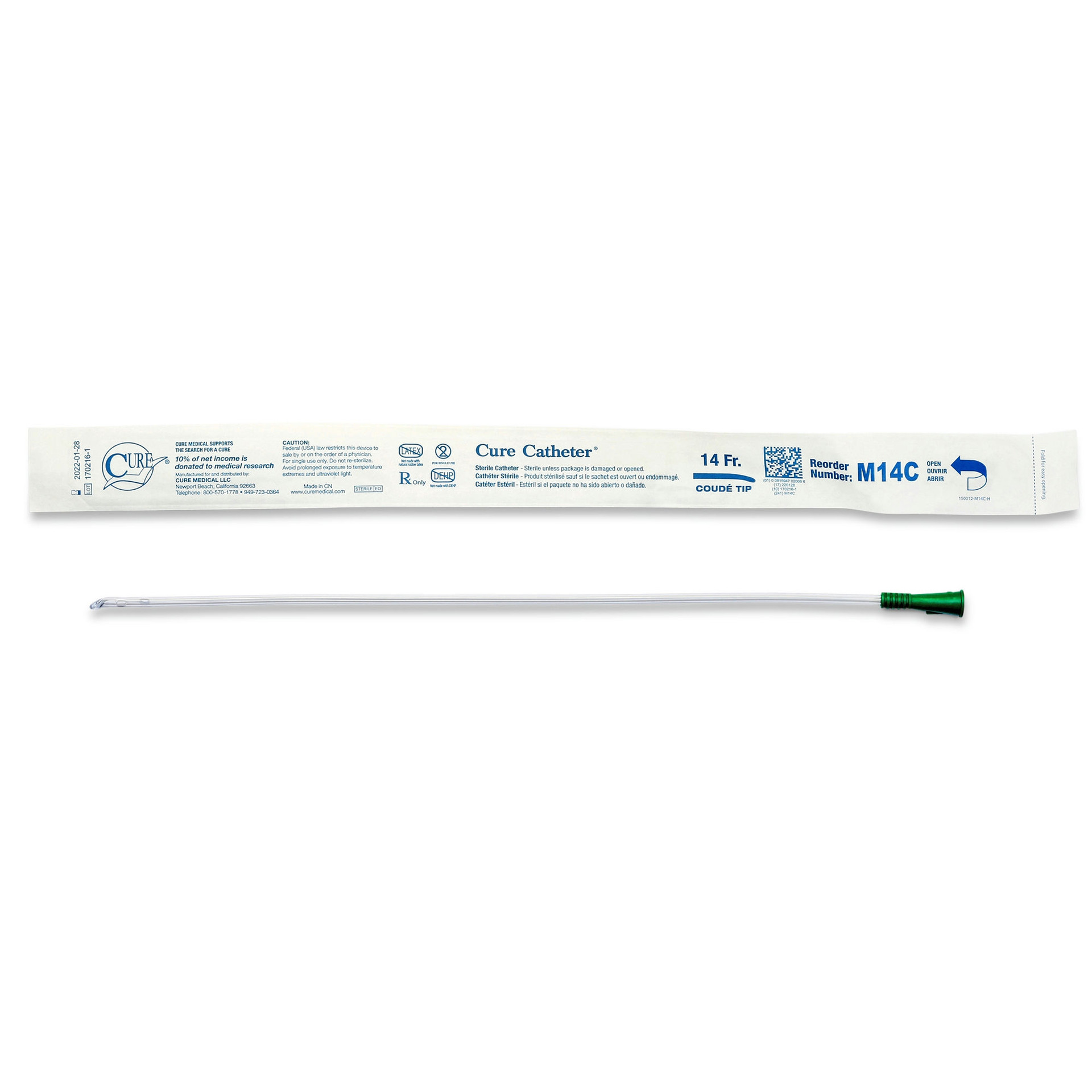 Cure Urethral Catheter, Unissex, Coude Tip, Uncoated PVC, 16″