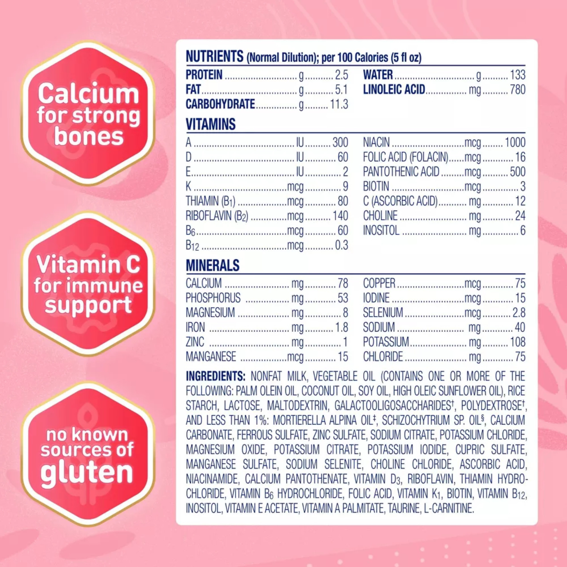 - DHA to help support brain development, prebiotics and vitamins to help support digestive and immune health