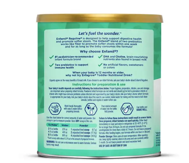 Enfamil Reguline Infant Formula, Powder, 12.4 oz. FAQs