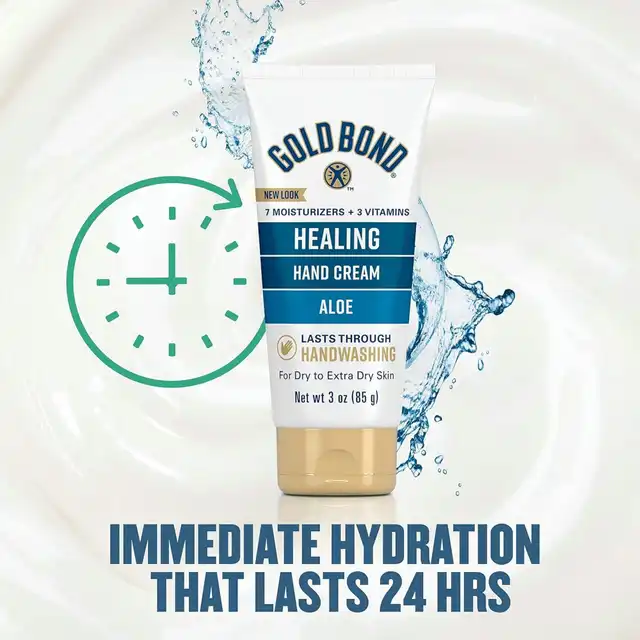 Gold Bond Healing Aloe Hand Cream delivers instant hydration that lasts all day, even after washing your hands, leaving your skin feeling healthier and more nourished. This non-greasy formula forms a protective barrier to help heal and smooth dry skin.