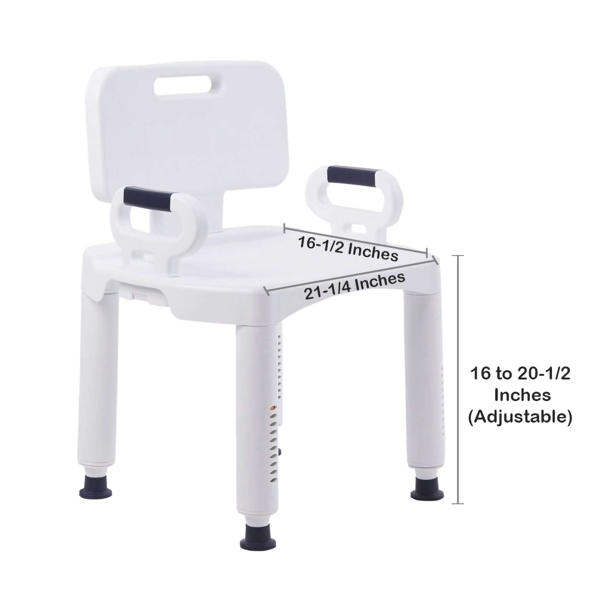 This bath bench offers a customizable fit with an adjustable height range, making it a great choice for various users. Its removable arms and backrest provide flexibility based on personal preference.
