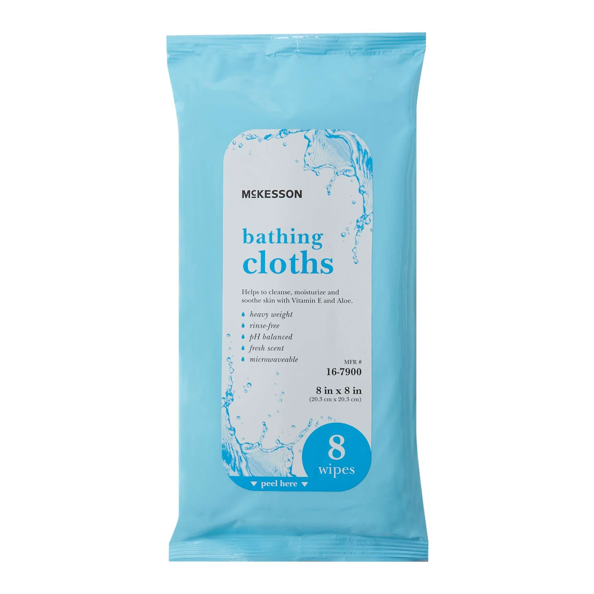 | McKesson Rinse-Free Bath Wipe | 8 x 8 inches | 8 wipes per pack | Soft Pack |