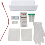 - Contents: 1 – Red Rubber Catheter 14 FR, 1 – Pair of Vinyl Gloves, 1 – Specimen Container with Lid 4 oz., 1 – Fenestrated Drape 18 x 17 Inch, 1 – Pack of Three PVP Swabsticks, 1 – Pack of Lubricating Jelly 3 g, 1 – Underpad 18 x 17 Inch, 1 – Patient Label, 1 – Outer Tray 1000 mL.