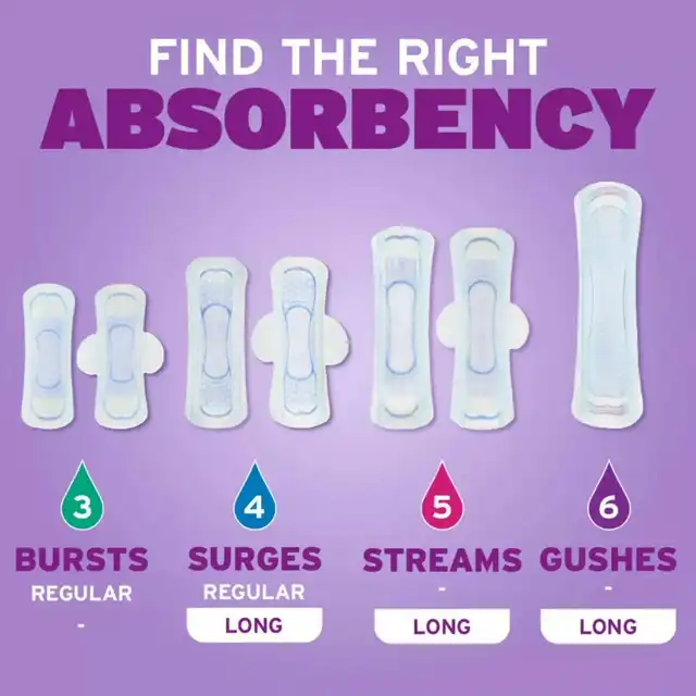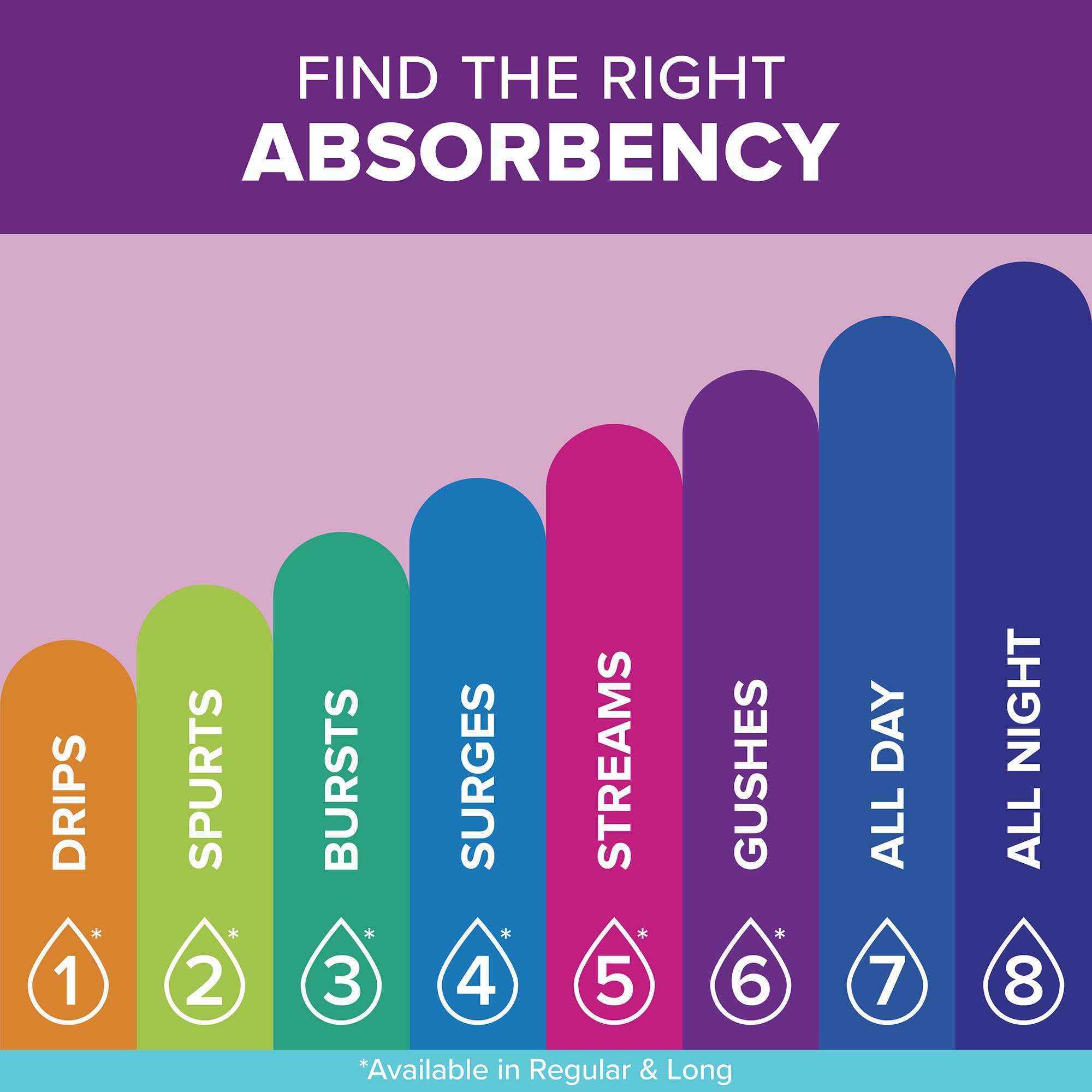 - Dry-Touchâ„¢ layer rapidly absorbs and locks away 10x more wetness (vs. leading period pads, 24ml of fluid).
