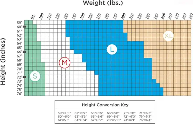 - Available in size Medium (32 to 44 in. waist), Large (45 to 58 in. waist) and Extra Large (59 to 64 in. waist)