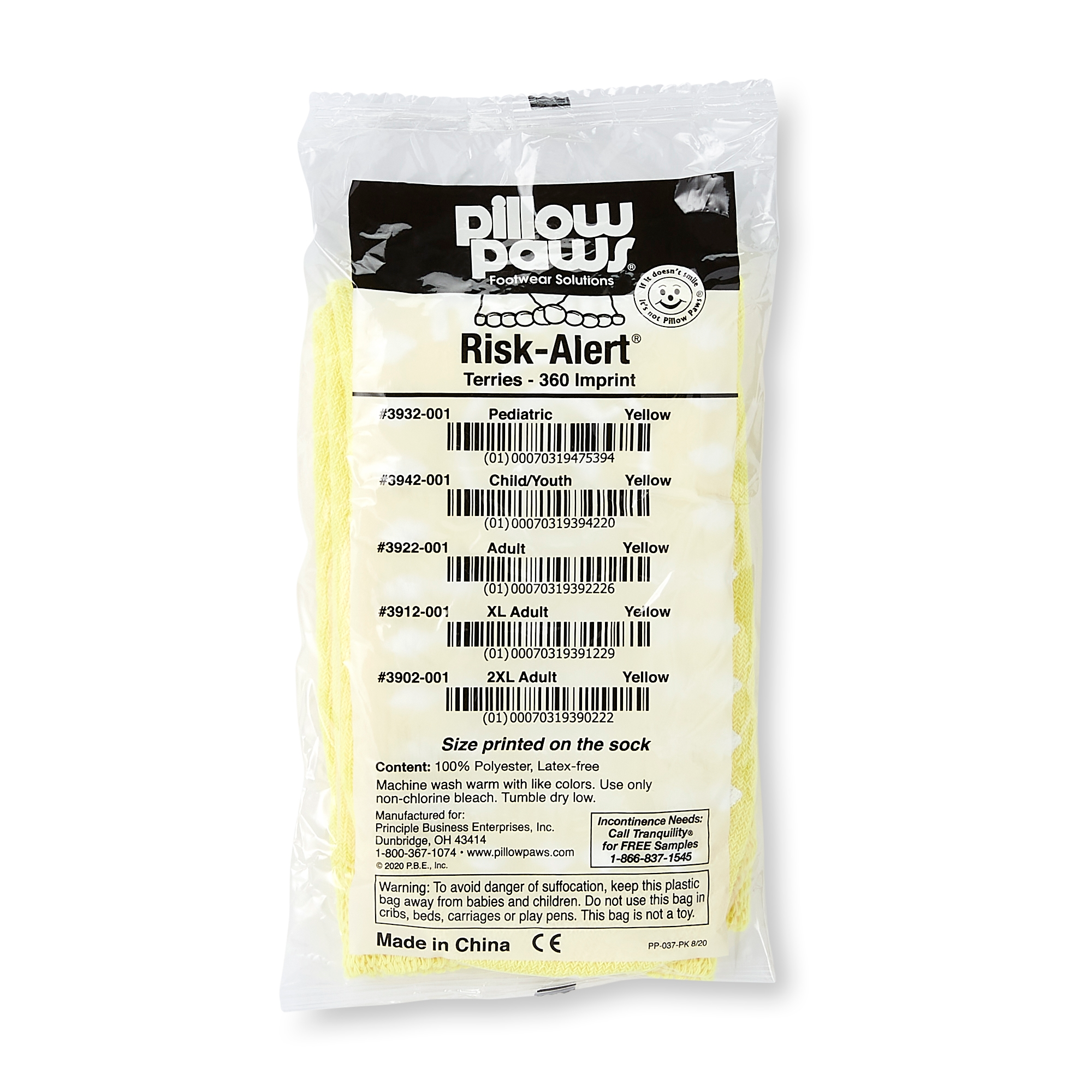 • Pillow Paws® Risk Alert® Terries™ Slipper Socks follow the Arizona Standard for color-coding patient conditions